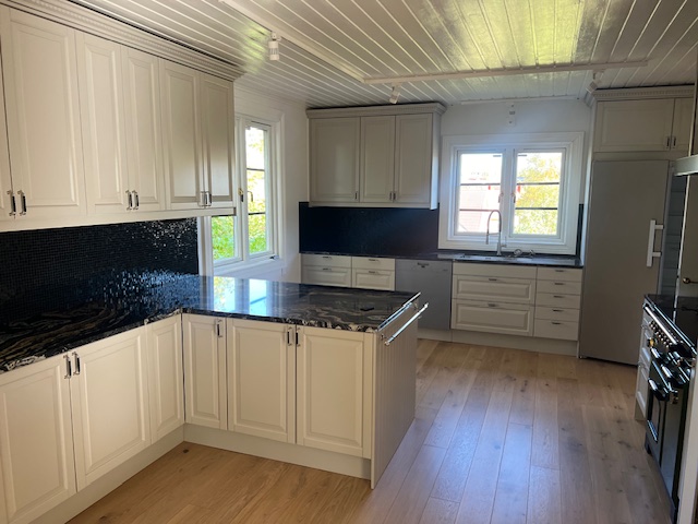 Newly renovated villa in Bromma with an attractive location close to good communications. The home covers 230 square meters and offers four bedrooms, three of which are on the upper floor and one on the lower floor. Two tastefully renovated bathrooms and a total of four toilets provide high comfort for the whole family. In the basement there is an inviting spa area with sauna, shower and bathtub. The house also includes a garage.