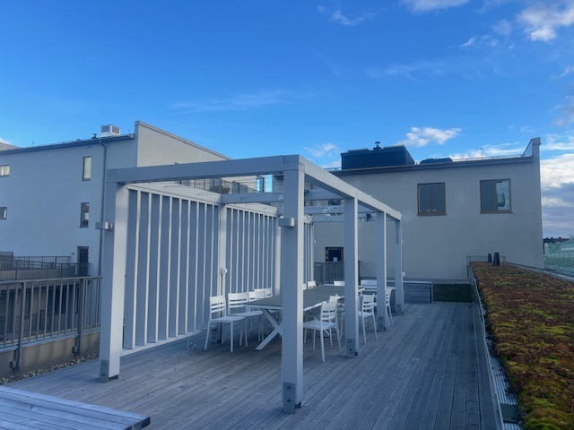Very modern and well-planned apartment with an excellent location in attractive Hagastaden. Open-plan kitchen and living room with access to a spacious terrace that offers wonderful outdoor opportunities. The apartment has its own washing machine and dryer for extra convenience. There is also a separate roof terrace with a nice view – perfect for relaxation or social moments.